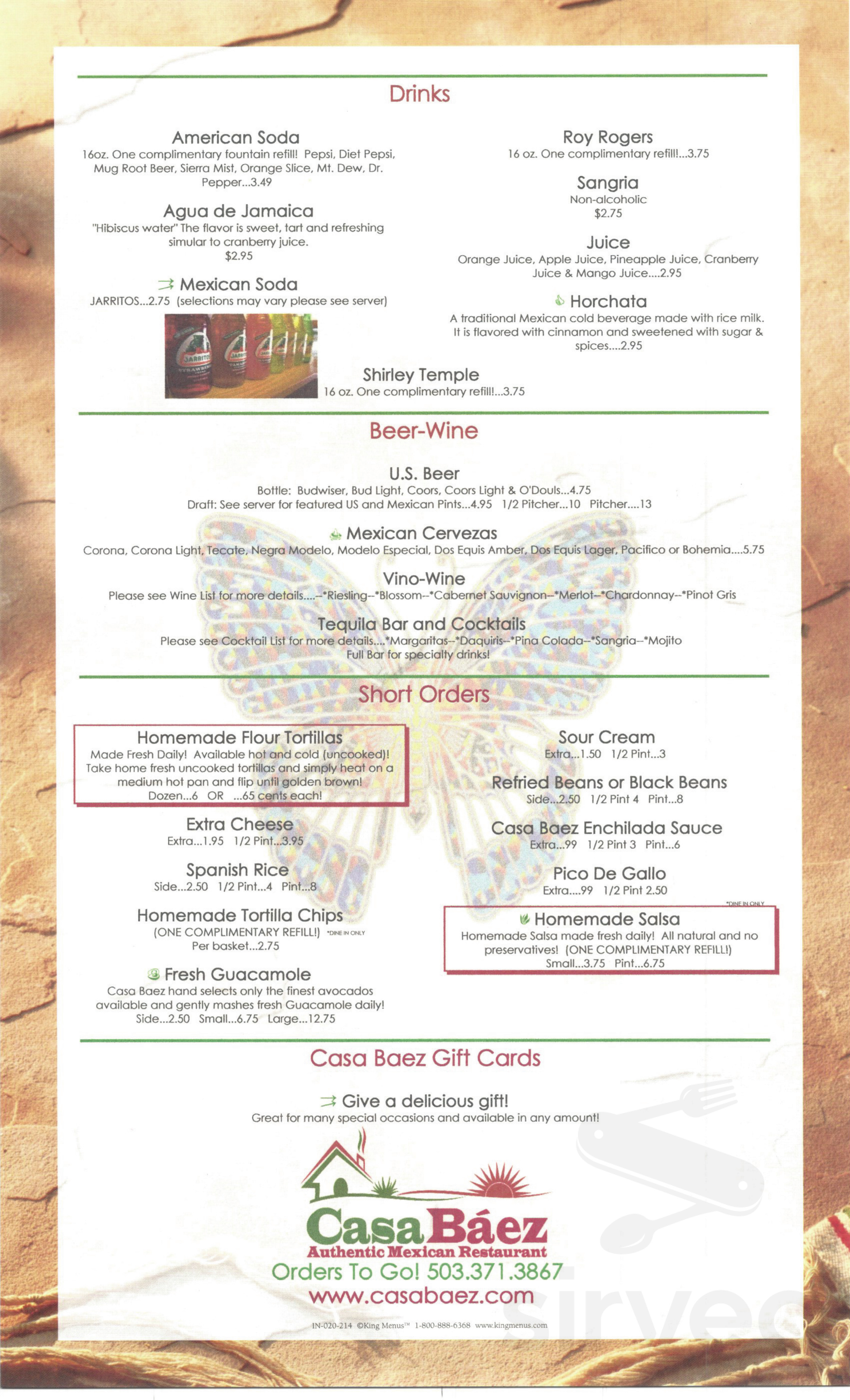 Delivery Pickup Options - 82 reviews of Casa Baez Mexican Restaurant Our family has been intermittently visiting Los Baez restaurants in Tigard Salem and Eugene for over 15 years. Welcome to Las Cazuelas Mexican Restaurant. Reserve Your Table On OpenTable Now.
