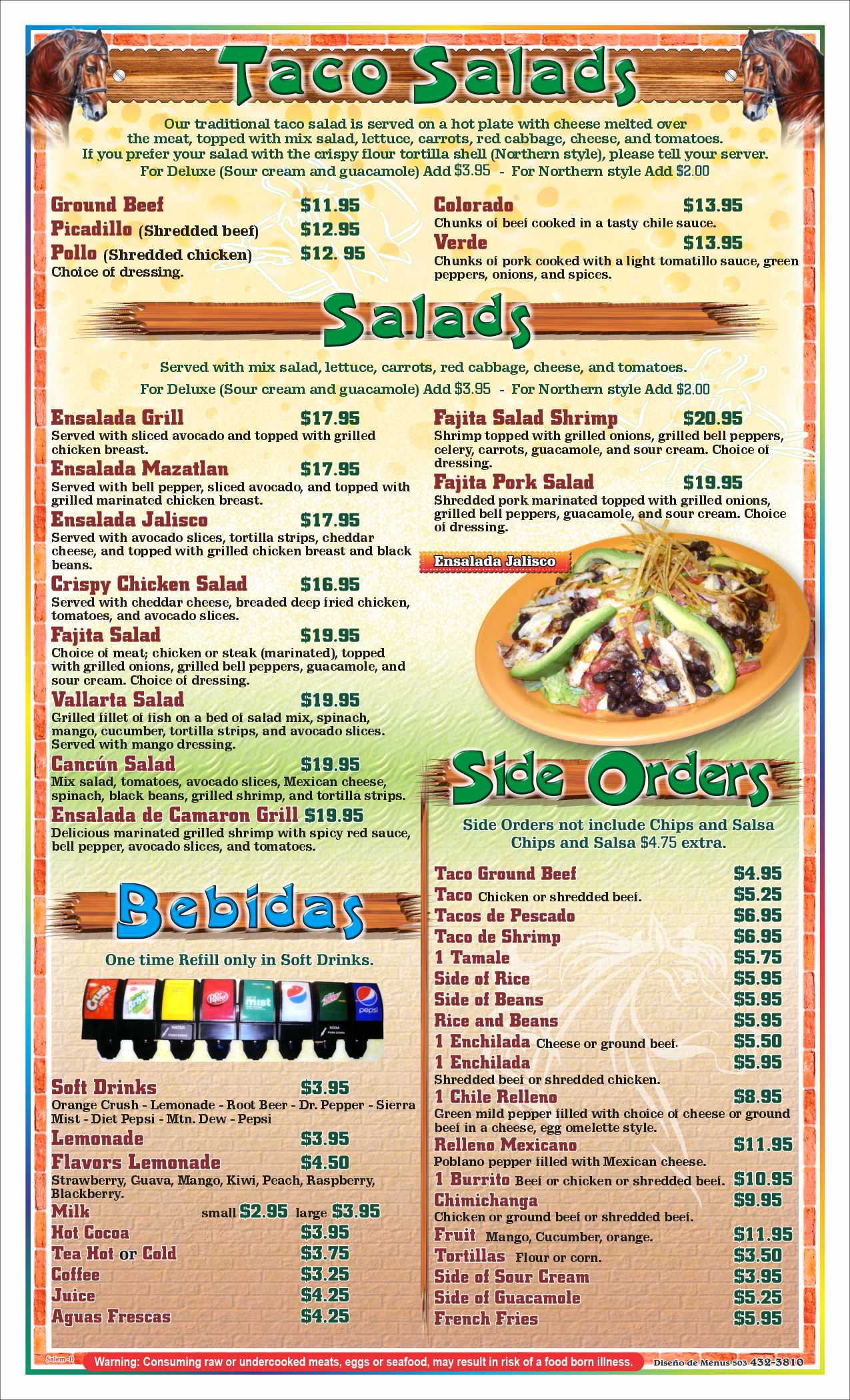 Paco S Mexican Food Menu In Salem Oregon Usa